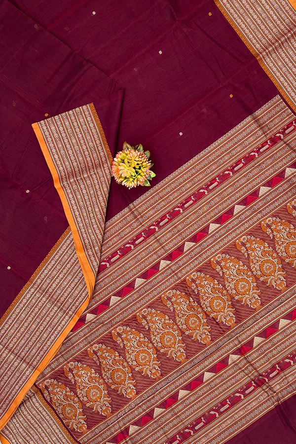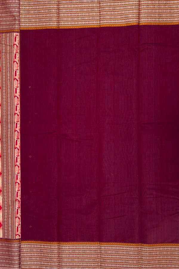 Dark Maroon Kanchi Cotton Saree with Jacard Border