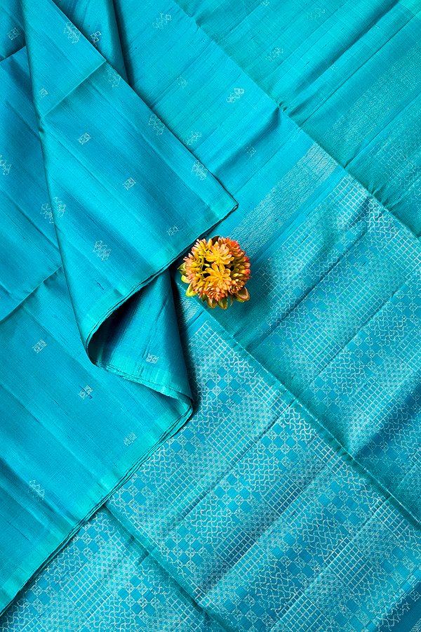 Handwoven Dupion Soft Silk Sarees with Small Buttas and Running Plain Blouse